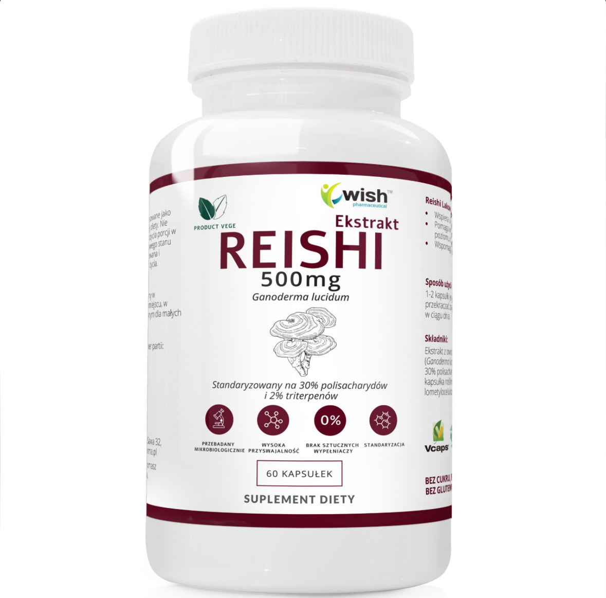 REISHI EXTRACT 500MG EXTRACT FROM THE FRUITING REISHI MUSHROOMS 60 CAPSULES PRODUCT VEGE ❌ არ არის რეკომენდებული ❌