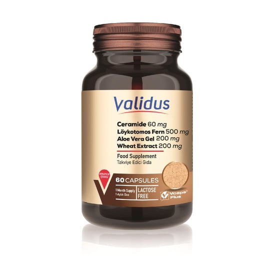 Validus Ceramide 60 mg + Löykotomos Fern 500 mg + Aloe Vera Gel 200 mg + Wheat Extract 200 mg 60 Capsules ❌ არ არის რეკომენდებული ❌